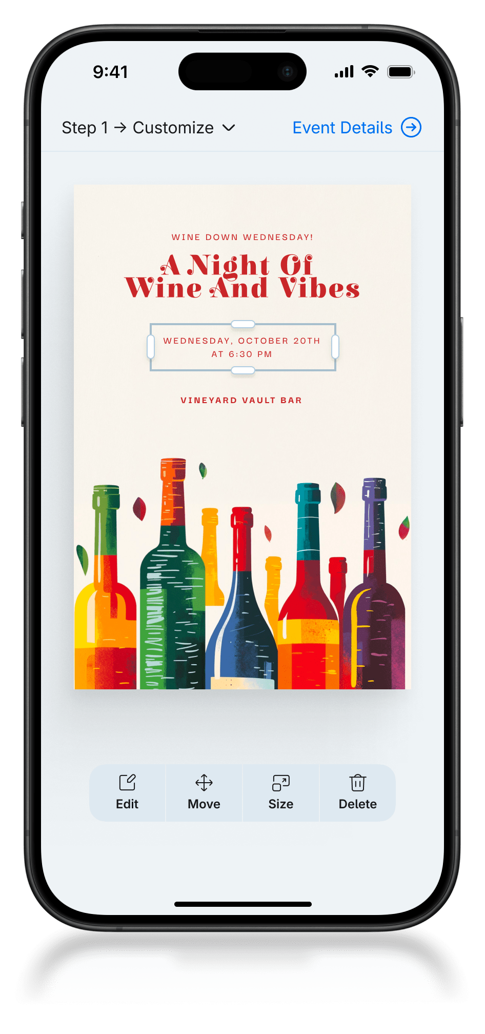 Creating an invitation is easy! Select a template from our crafted collection for every occasion and customize it with your text, font, and colours to suit your event's theme using our easy-to-use editing tools